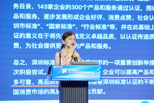 “標(biāo)準(zhǔn)決定質(zhì)量,有什么樣的標(biāo)準(zhǔn)就有什么樣的質(zhì)量,只有高標(biāo)準(zhǔn)才有高質(zhì)量。”深圳市卓越績效管理促進(jìn)會(深圳標(biāo)準(zhǔn)認(rèn)證聯(lián)盟秘書處)副秘書長王瑩女士以《深圳標(biāo)準(zhǔn)認(rèn)證政策宣貫》為題,對深圳標(biāo)準(zhǔn)認(rèn)證概念進(jìn)行了解讀,從幾大行業(yè)領(lǐng)域?qū)φJ(rèn)證成果進(jìn)行展示分享,并重點(diǎn)介紹了深圳標(biāo)準(zhǔn)認(rèn)證的申報(bào)指南。以認(rèn)證傳遞質(zhì)量信任,發(fā)揮品牌引導(dǎo),促進(jìn)品質(zhì)消費(fèi)。
