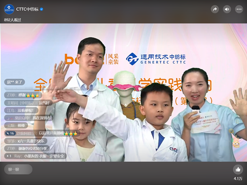 小使者活動特別邀請GB 31701標(biāo)準(zhǔn)的第一起草人徐路為大家講解為什么要將童裝的附件(小部件脫落強力和繩帶尺寸)、色牢度這些項目列入標(biāo)準(zhǔn)中。線上互動體驗環(huán)節(jié),讓更多的小朋友跟著老師“在家做實驗”,通過平臺留言分享自己的心得與感受,線上搶答拼手速,調(diào)動孩子們的參與積極性,為居家學(xué)習(xí)期間的孩子們帶來了一堂精彩的“云上實驗室之旅”。通過線上+線下的不同展現(xiàn)形式,收獲了更多忠實粉絲,小朋友們將跟隨小使者活動一起,在傳遞綠色、科技、公益的道路上篤定前行。