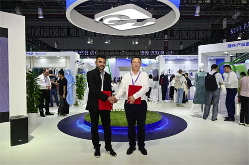 通用技術(shù)新材展團(tuán)現(xiàn)場(chǎng)國(guó)內(nèi)外客商絡(luò)繹不絕,綠纖、特纖等相關(guān)產(chǎn)品尤其受到關(guān)注,通用技術(shù)新材展團(tuán)與幾十家客戶達(dá)成了合作意向。中紡綠纖與巴基斯坦公司SARA TRADE INTERNATIONAL 簽訂了戰(zhàn)略合作協(xié)議。